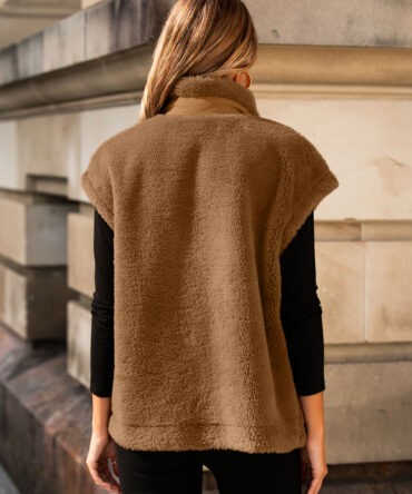 Fuzzy Sleeveless Zip Up Sherpa Vest with Pockets