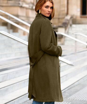 Double Breasted Suede Lapel Belted Trench Coat