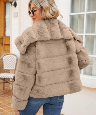 Luxurious Faux Fur Short Coat with Shawl Collar