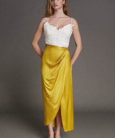 Yellow Jacquard Ruched Wrap Maxi Skirt